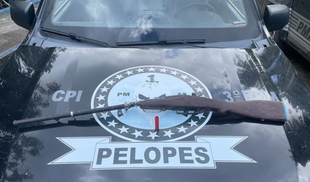 Policiais Militares do Pelopes 01 e 02 prenderam, ontem, domingo, 16, um jovem, de 18 anos, flagrado com uma espingarda, dentro de um bar. A prisão ocorreu no Vale da Perucaba, bairro Olho D’Água dos Cazuzinhas, em Arapiraca, após os militares receberem uma denúncia anônima.